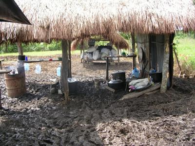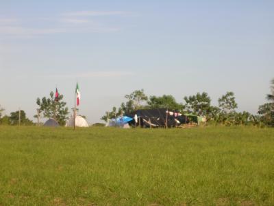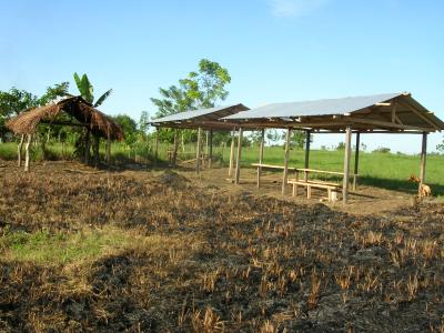 Dieses sind die neuen Hauser. Links die Kueche, in der Mitte der Esssaal und rechts ein Haus das spaeter die Kirche wurde