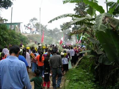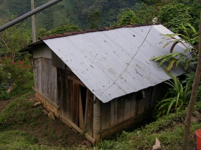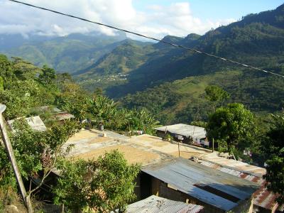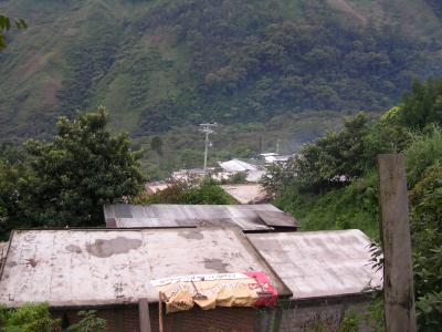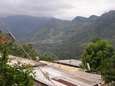Hier sieht man ganz gut, dass das Dorf am "Hang" liegt. So steill geht es weiter und die Kaffeefelder sind weiter unten. Ist ganz schoen Anstrengend da hoch und runter zu gehen.
